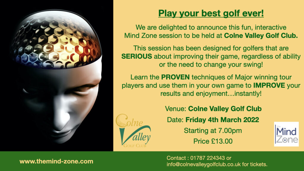 Grab a place on the Mind Zone Session at Colne Valley Golf Club (CO6 2LT) on Friday 4th March.